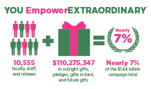 MSU faculty, staff, and retirees have given an average of more than $15 million each year throughout the Empower Extraordinary campaign, providing an insider vote of confidence that helped solidify the campaign’s success.