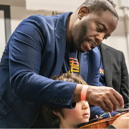 Damien Crutcher, '90, is leading the mission to build "purpose-driven lives" by putting an instrument in the hands of every child in Detroit.